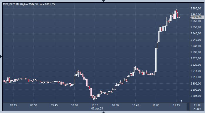 По состоянию на 11:13 МСК индекс Мосбиржи достиг отметки 2888,53 пункта, что на 4,5% выше уровня предыдущего закрытия. Индекс РТС также показал рост на 4,5%, достигнув отметки 1134,72 пункта.
