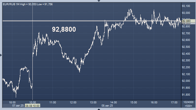 - 92,8800 рубля за 1 евро