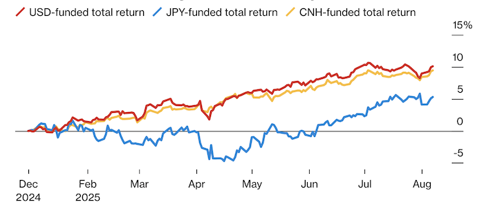 Индекс Bloomberg Cumulative FX Carry Trade, который отслеживает доходность восьми валют развивающихся рынков по отношению к доллару, в этом году показал рост более чем на 10%. Некоторые инвесторы сокращают рискованные ставки, чтобы зафиксировать эту прибыль, заявляя, что пошлины Трампа могут обрушить экономику и подстегнуть инфляцию в США.