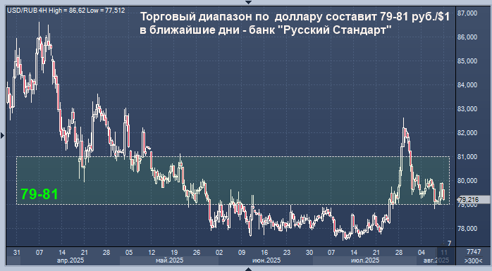 Торговый диапазон по паре доллару, скорее всего, составит в ближайшие дни 79-81 руб./$1, по евро - 92-94 руб./EUR1, говорится в комментарии директора департамента операций на финансовых рынках банка "Русский Стандарт" Максима Тимошенко.