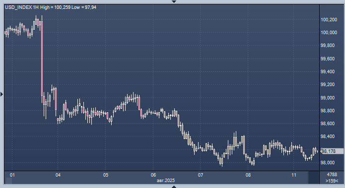 Индекс доллара снизился менее чем на 0,1% до 98,164 после падения на прошлой неделе на 0,4%. По отношению к иене доллар США торговался на уровне 147,39, снизившись на 0,2%. Японские рынки в понедельник были закрыты в связи с Днем гор.