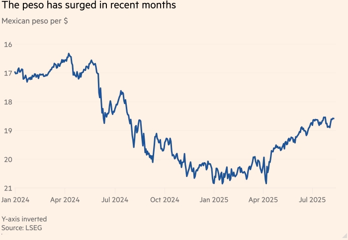 Неожиданным результатом торговой войны, начатой Дональдом Трампом, стало укрепление мексиканского песо. Это связано с тем, что снижение глобальных рисков и неоднократные отсрочки введения тарифов в США привлекают инвесторов в высокодоходные активы Мексики.