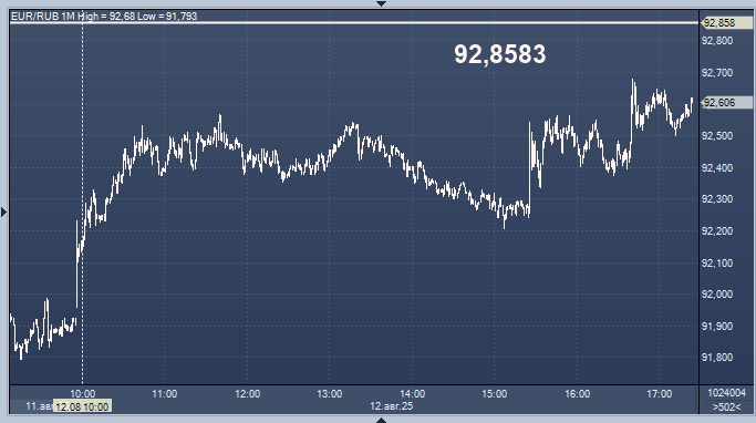 - 92,8583 рубля за 1 евро