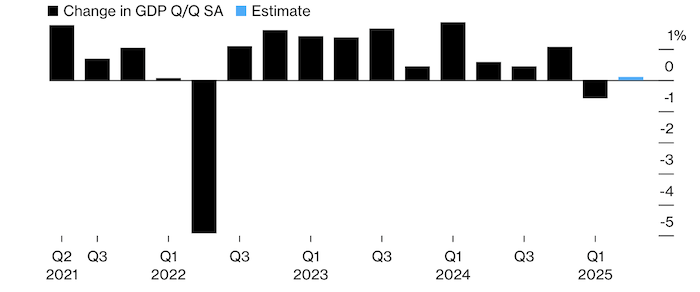 Валовой внутренний продукт в годовом выражении вырос на 1,5% во втором квартале, согласно медианному прогнозу экономистов, опрошенных Bloomberg. Это означает, что в квартальном исчислении экономика также выросла, что позволило избежать второго сокращения подряд, которое является определением технической рецессии.