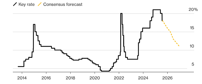Сможет ли Россия поддерживать даже скромный рост, теперь может зависеть не только от внутренней монетарной политики, но и от геополитики. Ставки по депозитам и кредитам остаются высокими и давят на кредитование и потребление населения, говорит Орлова.