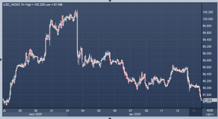 Индекс доллара, который отражает стоимость валюты по отношению к корзине других валют, снизился до 97,76, что стало самым низким показателем с 28 июля. Во вторник он продолжил падение на 0,5%.