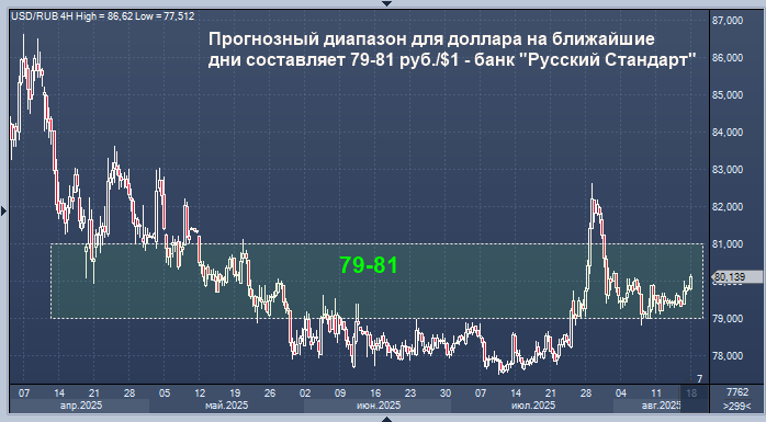 Прогнозный диапазон для доллара на ближайшие дни составляет 79-81 руб./$1, для евро - 92-95 руб./EUR1, полагает директор департамента операций на финансовых рынках банка "Русский Стандарт" Максим Тимошенко.