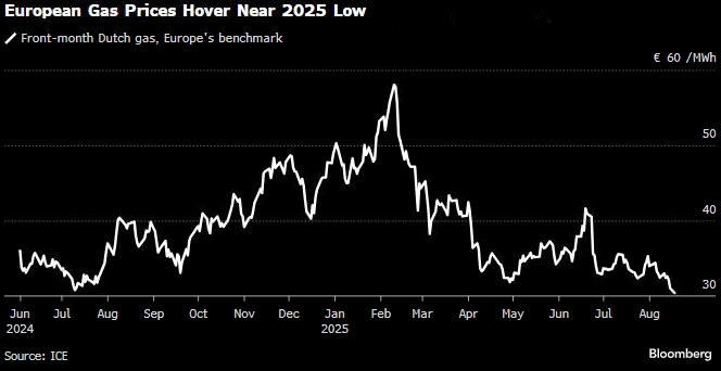 В понедельник, 18 августа, фьючерсы на газ дешевели, но ближе к середине дня сократили часть потерь. Нисходящая динамика цен наблюдается с прошлой недели, когда встреча Трампа с российским коллегой Владимиром Путиным усилила ожидания окончания конфликта. Соглашение, какими бы значительными ни были возможные уступки для Украины, может снизить напряженность на рынке, если в итоги предложение российских энергоносителей увеличится.