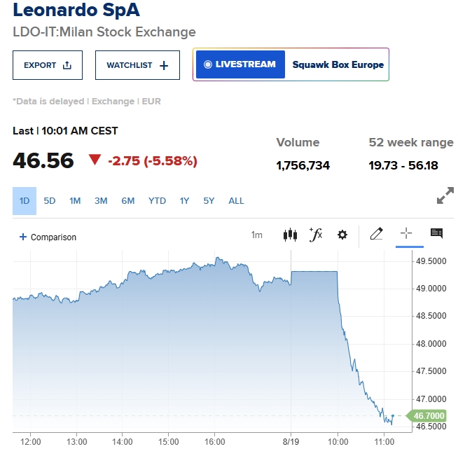 Акции немецкого производителя деталей для танков Renk упали на 6,5% по сравнению с итальянским оборонным гигантом Leonardo, акции которого подешевели на 4,6%. Шведская компания Saab снизилась на 4,2%.