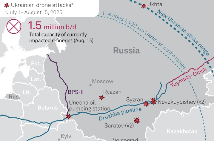 В период с 13 по 18 августа насосная станция на трубопроводе дважды подвергалась атакам украинских беспилотников, что привело к приостановке поставок нефти оставшимся потребителям российской нефти в Словакии и Венгрии.