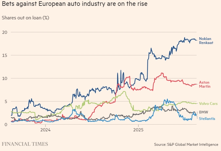 Хедж-фонды активно играют на понижение акций европейской автомобильной промышленности, в то время как сами автопроизводители и поставщики компонентов сталкиваются с замедлением рынка и обострением конкуренции, особенно со стороны китайских компаний.