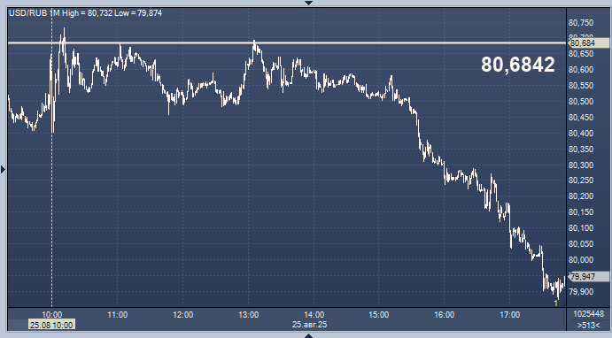 - 80,6842 рубля за 1 доллар