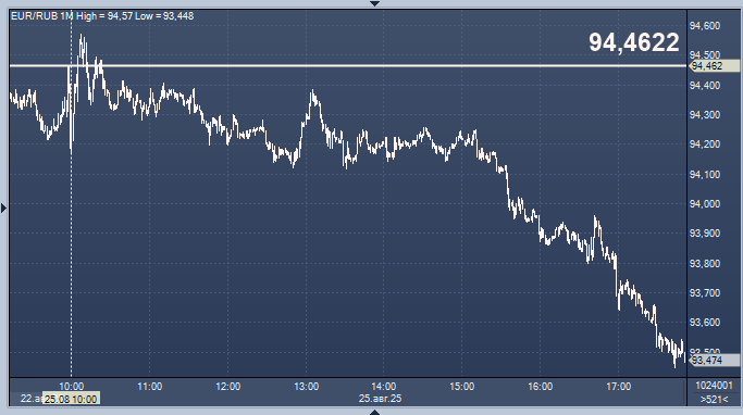 - 94,4622 рубля за 1 евро