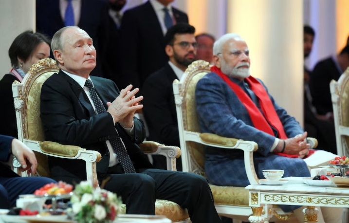 Президент России Владимир Путин и премьер-министр Индии Нарендра Моди посещают концерт перед неформальным ужином в рамках саммита БРИКС в Казани, Россия, 22 октября 2024 года. Алексей Никольский/BRICS-RUSSIA2024.RU. Фотохост-агентство через REUTERS