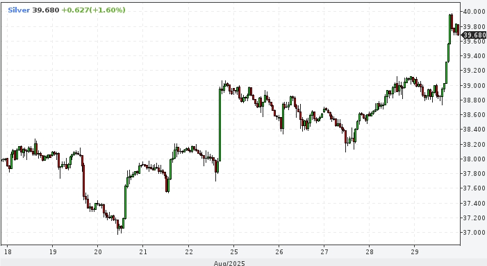 Акции на американском рынке пошли в минус, а драгоценные металлы, как инструменты хеджирования от инфляции, пошли в рост. Поскольку золото и так стоит очень дорого, инвесторы немного сомневаются, что оно готово уверенно расти выше апрельского рекордного пика 3500 долларов за унцию. Поэтому темпы роста у других драгметаллов выше. В частности, серебро дорожало сегодня куда более высокими темпами и достигло 39,97 доллара за унцию впервые с сентября 2011 года.