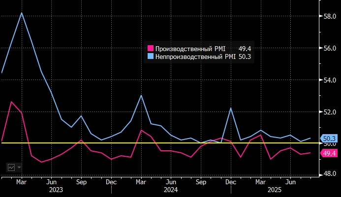 Аналитики, опрошенные агентством Reuters, прогнозируют, что индекс деловой активности (PMI) в частном секторе от RatingDog составит 49,7 пункта по сравнению с 49,5 пунктами месяцем ранее. Данные будут опубликованы в понедельник.