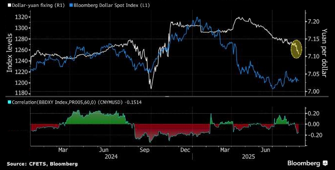 Это привело к снижению корреляции между фиксингом курса доллар/юань и курсом доллара США. Динамика этих двух показателей разошлась.