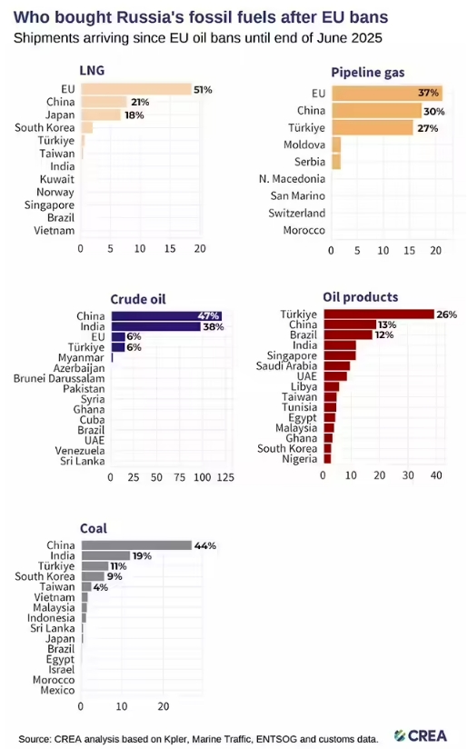 Кто покупал российское ископаемое топливо после запретов ЕС