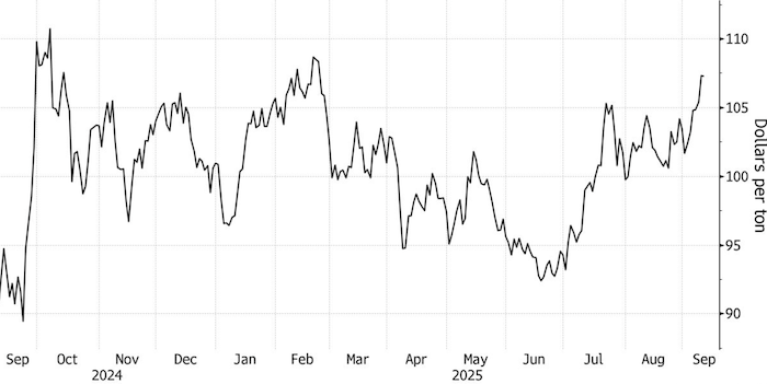 Фьючерсы поднялись выше $107, оставаясь на самых высоких уровнях с февраля. Цены резко выросли в начале этой недели, поскольку рынок взвешивал предстоящее пополнение запасов в Китае на фоне опасений по поводу поставок с рудника Симанду компании Rio Tinto Group в Гвинее. Тем временем фьючерсы на железную руду в Даляне продолжили свой рост.