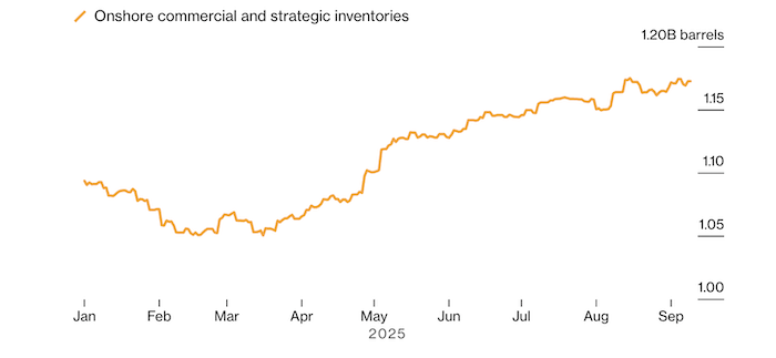 Сеть хранилищ, созданная для управления ценовой волатильностью, быстро расширялась последние 20 лет. Ситуацию усложняет и то, что значительная часть нефти может поступать из стран под санкциями, таких как Россия, Иран или Венесуэла. Растущие геополитические риски сделали энергетическую безопасность приоритетом для Китая, который импортирует более 70% своей нефти. По оценке Антуана Хальффа из аналитической компании Kayrros, к началу сентября общие запасы Китая выросли почти на 130 млн баррелей с конца марта. Это доводит общую заполненность надземных хранилищ примерно до 60,5%, оставляя место для дальнейших закупок. «Сегодня они готовы наращивать запасы. Это явная тенденция», — подтвердил на конференции Фредерик Лассерр, руководитель отдела исследований Gunvor Group. По его оценкам, в последние месяцы Китай закупал в резервы около 200 000 баррелей в сутки — объем, который оказал серьезную поддержку рынку.