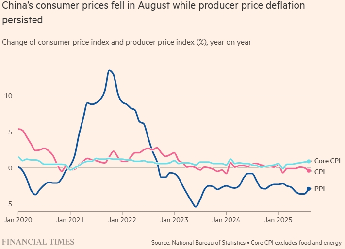 В августе в Китае была зафиксирована дефляция, что стало ещё одним свидетельством замедления роста второй по величине экономики мира после снижения темпов экспорта в предыдущем месяце.