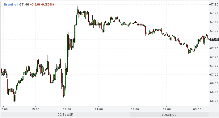 Утром в четверг, 11 сентября, Brent торговалась около $67,4 за баррель. Рост с начала недели +2,9%, с начала сентября -1,1%, в 3 квартале -0,3%, с начала 2025 г. -9,7%.