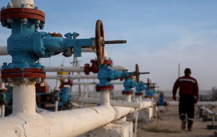 Работник нефтегазовой отрасли идёт по объекту компании «Озенмунайгаз» в Жанаозене Мангистауской области, Казахстан, 14 ноября 2023 г. REUTERS/Туран Казангапов