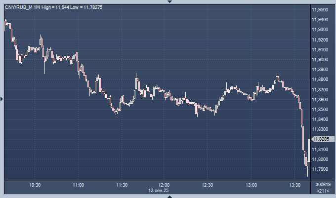 Курс рубля отреагировал незначительным ростом с уровня 11,88 за китайский юань до уровня 11,80 на решение Банка России снизить ставку всего на 1%. Акции России отреагировали более выражено, снизившись по фьючерсу на индекс Мосбиржи с отметки 290675 до 287 325.