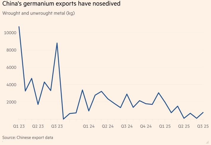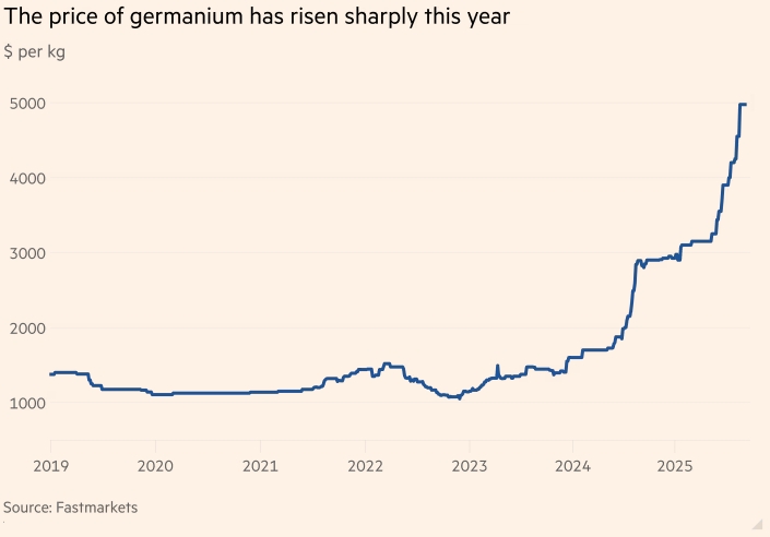 Трейдеры отмечают, что ограничения на экспорт германия из Китая, важного металла для оборонной промышленности, привели к острому дефициту и значительному росту цен. По данным на сентябрь 2024 года, цена на германий достигла почти 5000 долларов за килограмм, что является рекордом за последние 14 лет.