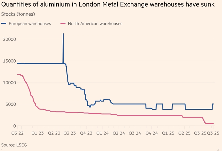 Рост цен на энергоносители в Европе после начала конфликта на Украине в 2022 году привёл к закрытию нескольких алюминиевых заводов, в то время как производство в странах, таких как Индонезия и Индия, восстанавливается медленно. Дэвид Уилсон, директор по товарной стратегии в BNP Paribas, отметил, что ограничения производства в Китае существенно изменили рынок.