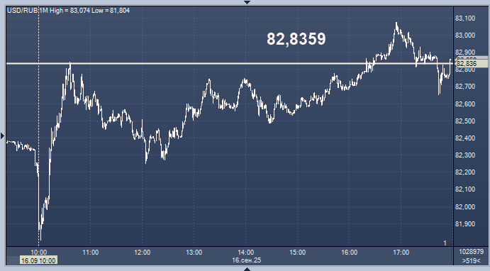 - 82,8359 рубля за 1 доллар