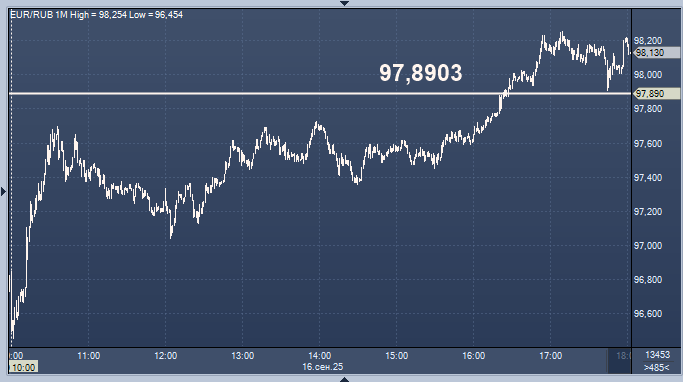 - 97,8903 рубля за 1 евро