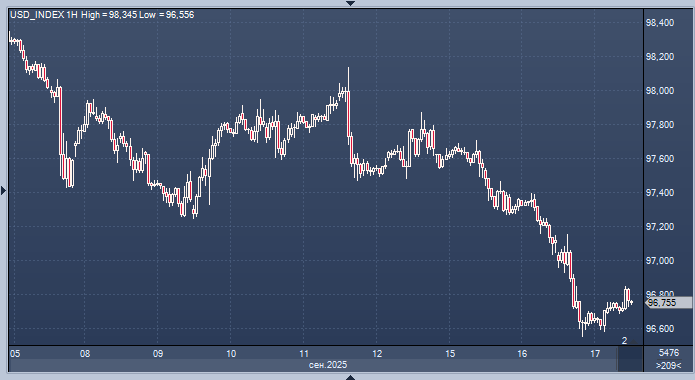 накануне, во вторник, доллар достиг четырёхлетнего минимума по отношению к евро. Это произошло, когда инвесторы переключили внимание на заседание Федеральной резервной системы, где ожидалось снижение процентной ставки на 25 базисных пунктов.