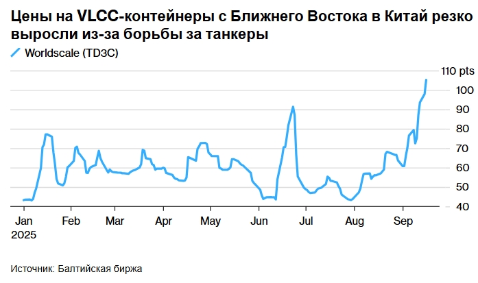 Брокеры сообщают, что эти суда предназначены для срочной доставки нефти в Восточную Азию в период с конца сентября по начало октября. Согласно данным биржи, маршрут TD3C, являющийся эталоном для других маршрутов, имел совокупный рейтинг Worldscale 105,2 на вторник.