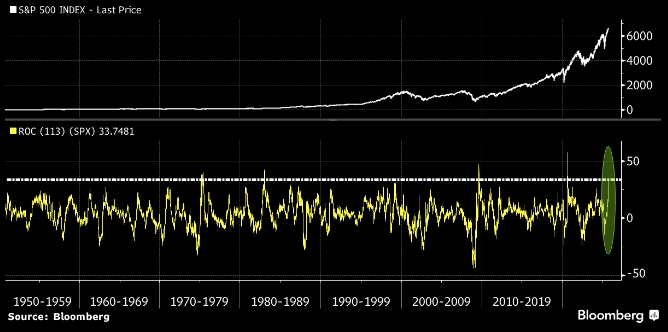 С начала апреля рыночная стоимость индекса S&P 50 увеличилась на 15 триллионов долларов В 2025 году рекордный максимум был переписан 27 раз. Согласно данным, собранным Bloomberg, рост S&P 500 на 34% за последние пять месяцев, вызванный ралли акций крупных технологических компаний, является рекордным, таких случаев с 1950 года было всего 4.