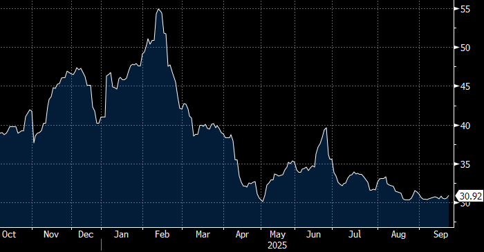 Средняя цена СПГ в ЕС (евро за МВт-ч). Данные: Европейское агентство по взаимодействию регуляторов энергетики (ACER)