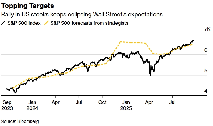 В результате стратеги Goldman Sachs Group Inc., Deutsche Bank AG и другие компании изо всех сил пытаются адаптироваться к текущей ситуации, при этом многие из них неоднократно пересматривали свои прогнозы с тех пор, как индекс S&P 500 продемонстрировал удивительно сильное восстановление после падения, вызванного введением Трампом пошлин в начале этого года.