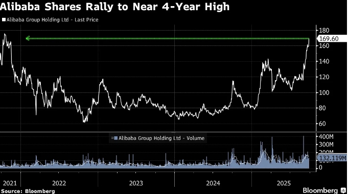 Акции Alibaba Group Holding Ltd. достигли самого высокого уровня почти за четыре года после объявления компании о планах увеличить расходы на искусственный интеллект до более чем 50 миллиардов долларов. Alibaba присоединилась к лидерам в сфере технологий, обещавшим значительные инвестиции в глобальную гонку за технологическими прорывами.