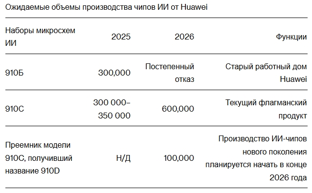 За лето Huawei удалось значительно увеличить объёмы производства. В этом году компания сообщила клиентам о готовности поставить 200 000 чипов Ascend 910C до конца года, а также около 100 000 устройств для собственного подразделения облачных вычислений и, возможно, некоторых государственных проектов.