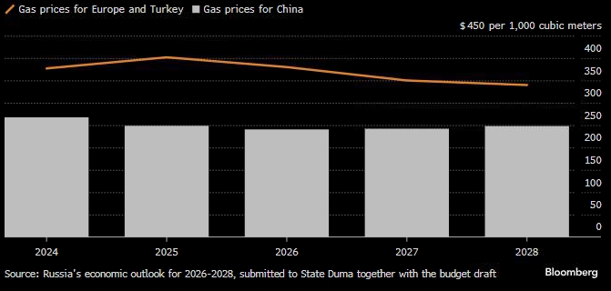 Ожидается, что в ближайшие 3 года цены на газ для Китая будут как минимум на 27% ниже, чем поставки в Турцию и немногим оставшимся клиентам в Европе, говорится в прогнозе Министерства экономики, представленном вместе с проектом бюджета в Государственную Думу в понедельник, 29 сентября. В 2025 году разрыв в ценах будет еще больше и составит 38%.
