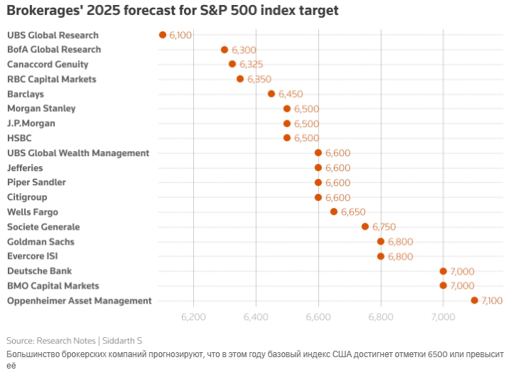 Ведущие брокерские компании выражают уверенность в росте эталонного индекса S&P 500 на фоне стабильной экономической ситуации в США и устойчивой прибыли корпораций, несмотря на убытки, вызванные введением тарифов.