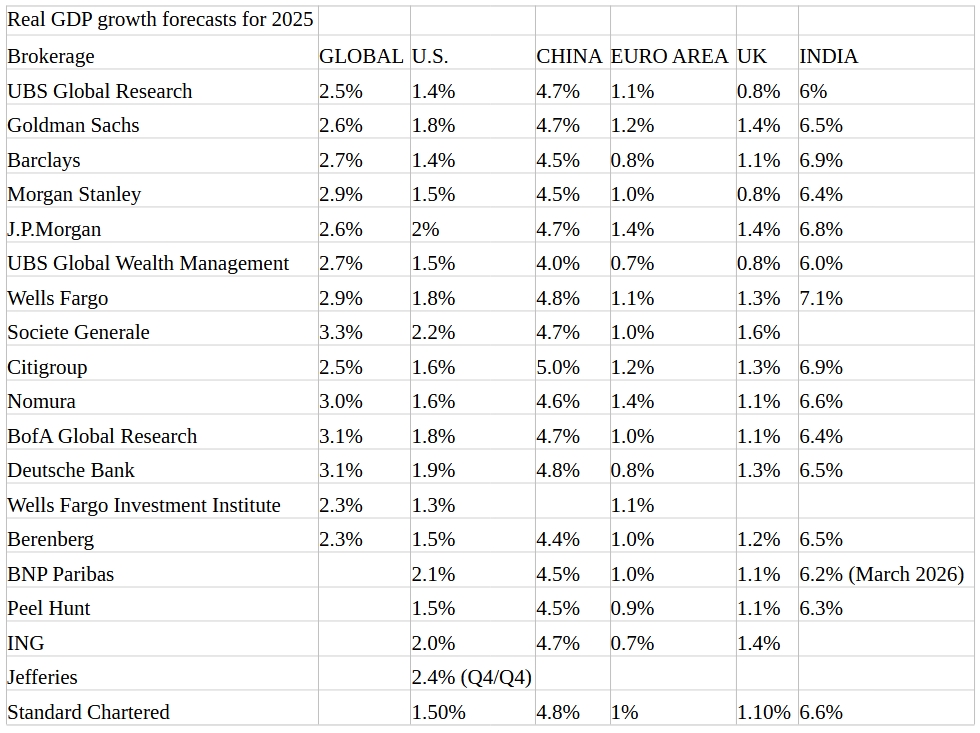 Ниже представлены прогнозы ведущих банков относительно экономического роста и доходности основных классов активов на 2025 год.