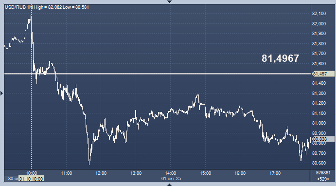 Китайский юань снижается на Московской бирже в среду. Рубль усилил темпы роста в ходе первых торгов квартала, несмотря на снижающуюся третий день подряд нефть, констатирует Интерфакс. Участники рынка ждут выступления президента РФ Владимира Путина на пленарной сессии 22-го ежегодного заседания дискуссионного клуба "Валдай", которое, по словам его пресс-секретаря Дмитрия Пескова, состоится в четверг, 2 октября.
