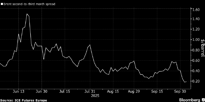 Однако к концу этой недели спред между вторым и третьим ближайшими фьючерсами сжался всего до $0,18 за баррель, что стало рекордно низким значением с прошлого ноября. Аналогичные показатели для ближневосточных смесей также оказались под давлением.