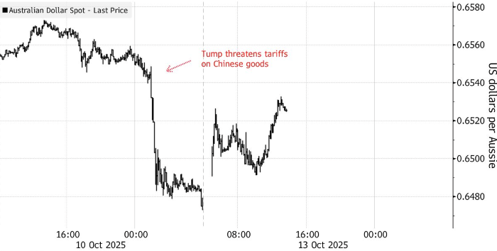 Австралийский доллар подорожал почти на 1% по отношению к доллару США — до 0.6533 — после того как в воскресенье администрация Трампа дала понять, что открыта к сделке с Китаем для снятия новой напряженности в торговле. В пятницу валюта падала на 1.3% на фоне угрозы Трампа ввести дополнительные 100%‑е пошлины на китайские товары.