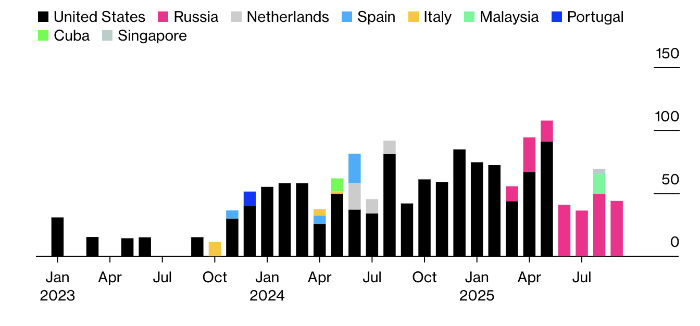 По данным аналитической компании Kpler, с марта по октябрь поставки нафты из США в Венесуэлу прекратились, в то время как импорт из России за тот же период превысил 7 млн баррелей. Это стало первой крупной волной поставок по маршруту Москва-Каракас почти за шесть лет.