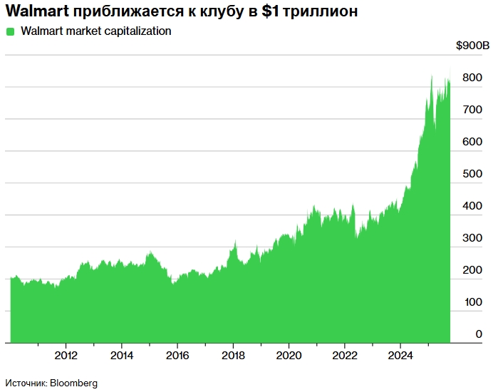После этой новости акции Walmart подскочили на 5%, что стало самым значительным ростом с апреля прошлого года, когда были приостановлены тарифы. В среду акции выросли ещё на 1,7%, и рыночная капитализация компании достигла 869,3 миллиарда долларов.