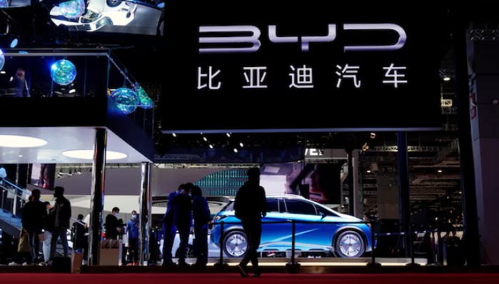 На фото: посетители у стенда BYD во время пресс-дня на Шанхайском автосалоне, Китай, 19 апреля 2021 года. REUTERS