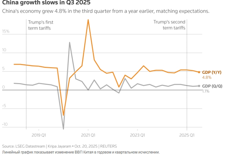 Пекин может использовать данные о стабильности роста как инструмент демонстрации силы на предстоящих переговорах между вице-премьером Хэ Лифэном и министром финансов Скоттом Бессентом в Малайзии на этой неделе, а также на возможной встрече президентов Дональда Трампа и Си Цзиньпина в Южной Корее в будущем.
