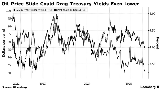 Снижение цен на нефть может укрепить позиции казначейских облигаций, так как более низкие цены на энергоресурсы, вероятно, ещё больше снизят инфляцию и усилят аргументы в пользу дальнейшего уменьшения процентных ставок Федеральной резервной системы. Это может предоставить «нестабильным» рынкам больше возможностей для роста.